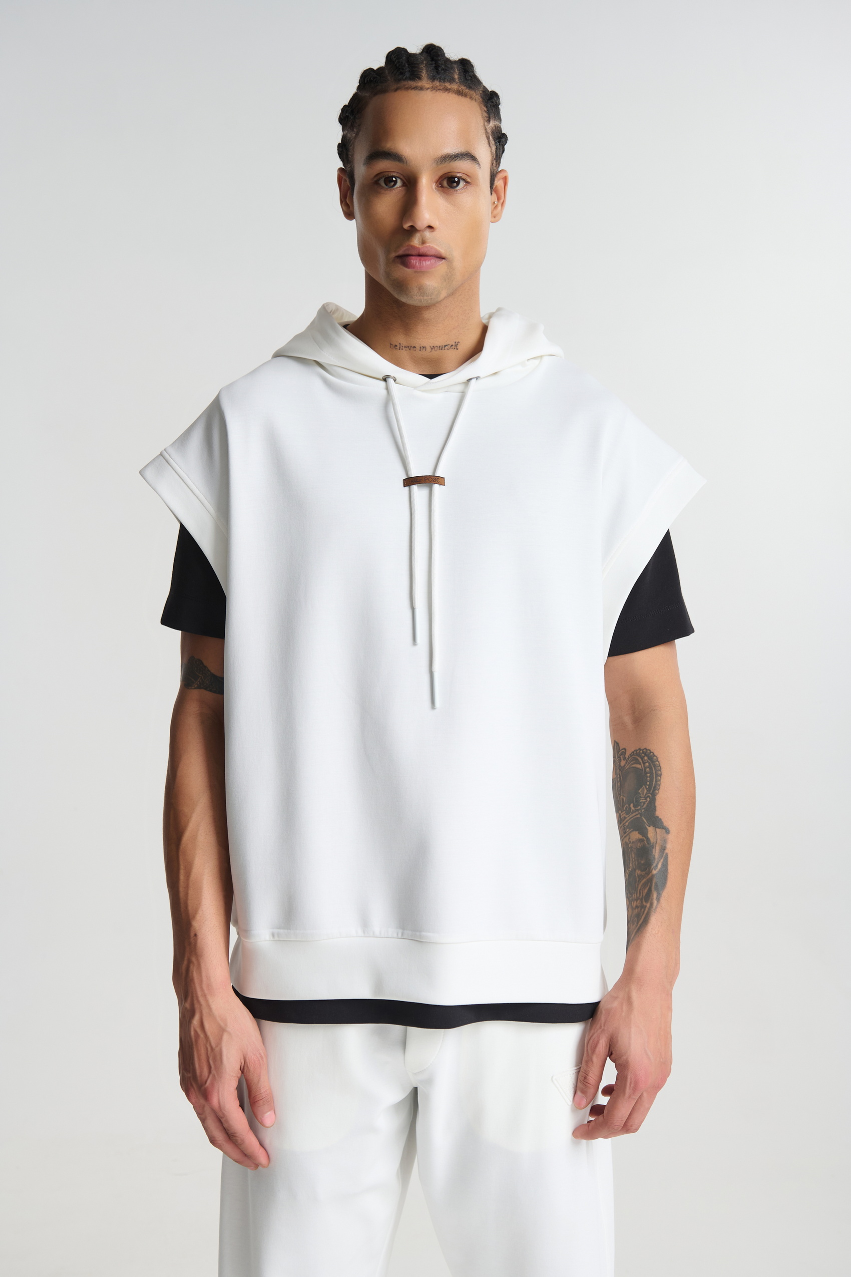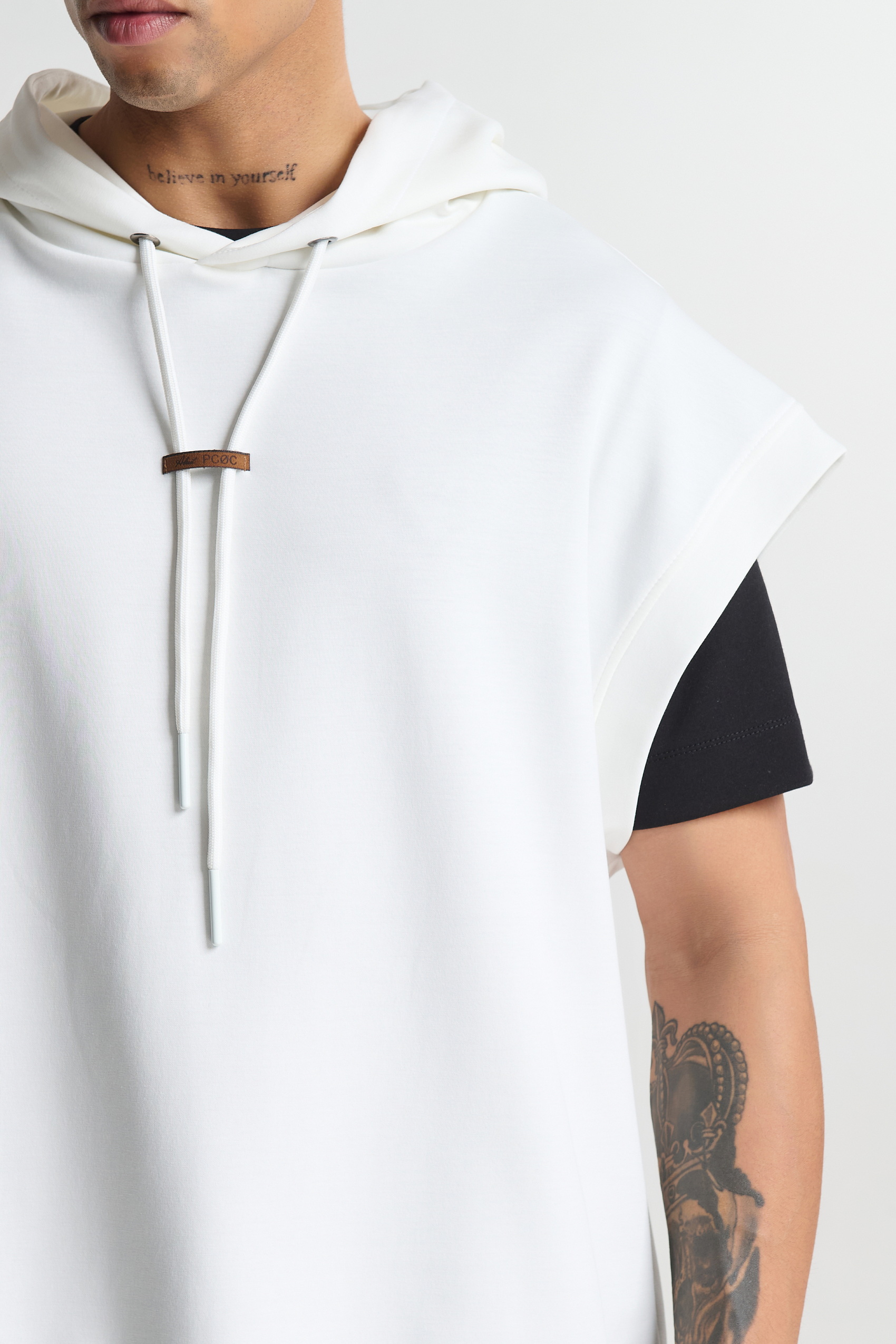 Ανδρικό αμάνικο φούτερ με κουκούλα σε άνετη oversized γραμμή. Ιδανικό για layering και casual εμφανίσεις.