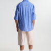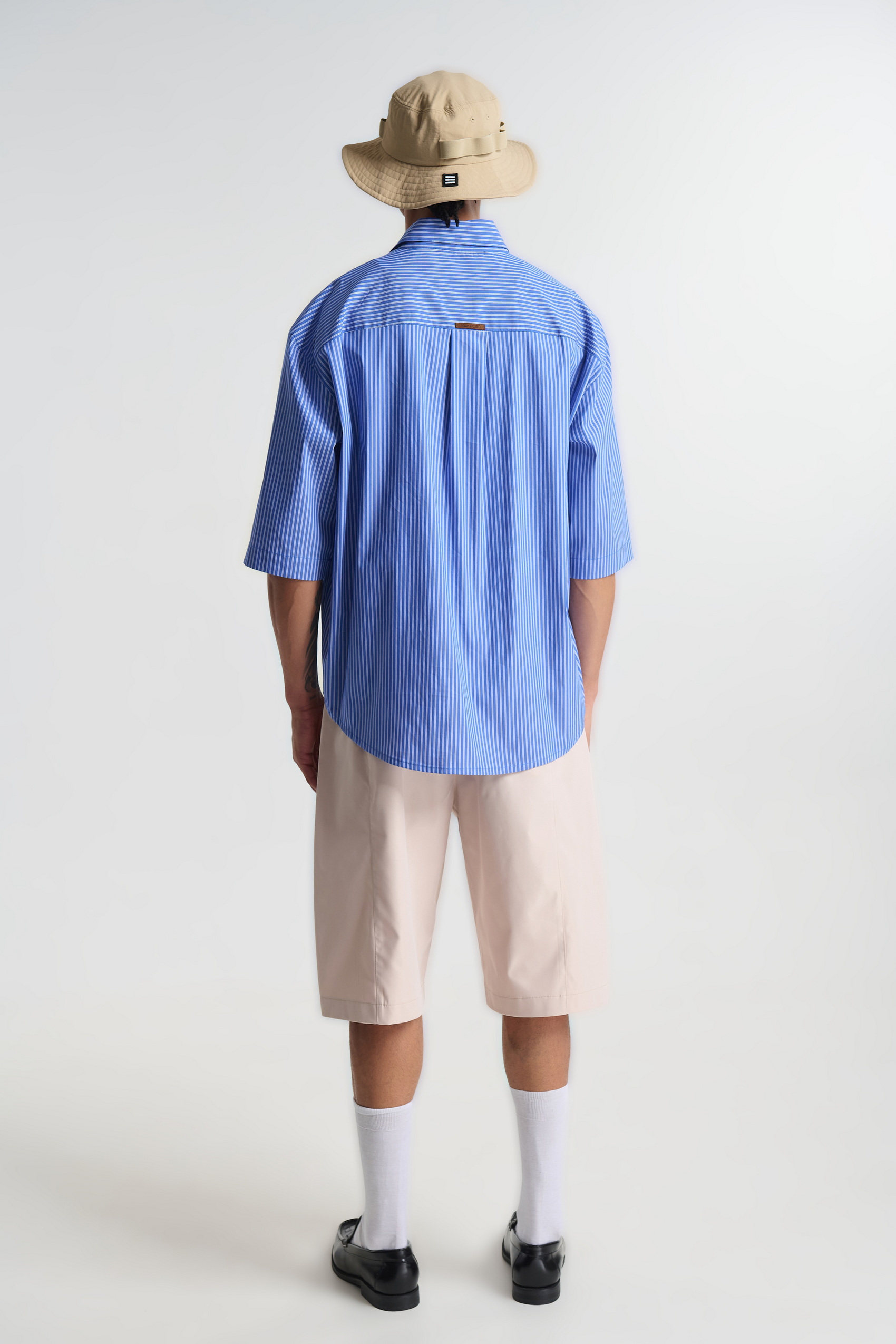 Ανδρικό ριγέ πουκάμισο σε μπλε και λευκό με χαλαρή oversized γραμμή και κοντό μανίκι 3/4. Ιδανικό για summer streetwear & smart-casual looks.