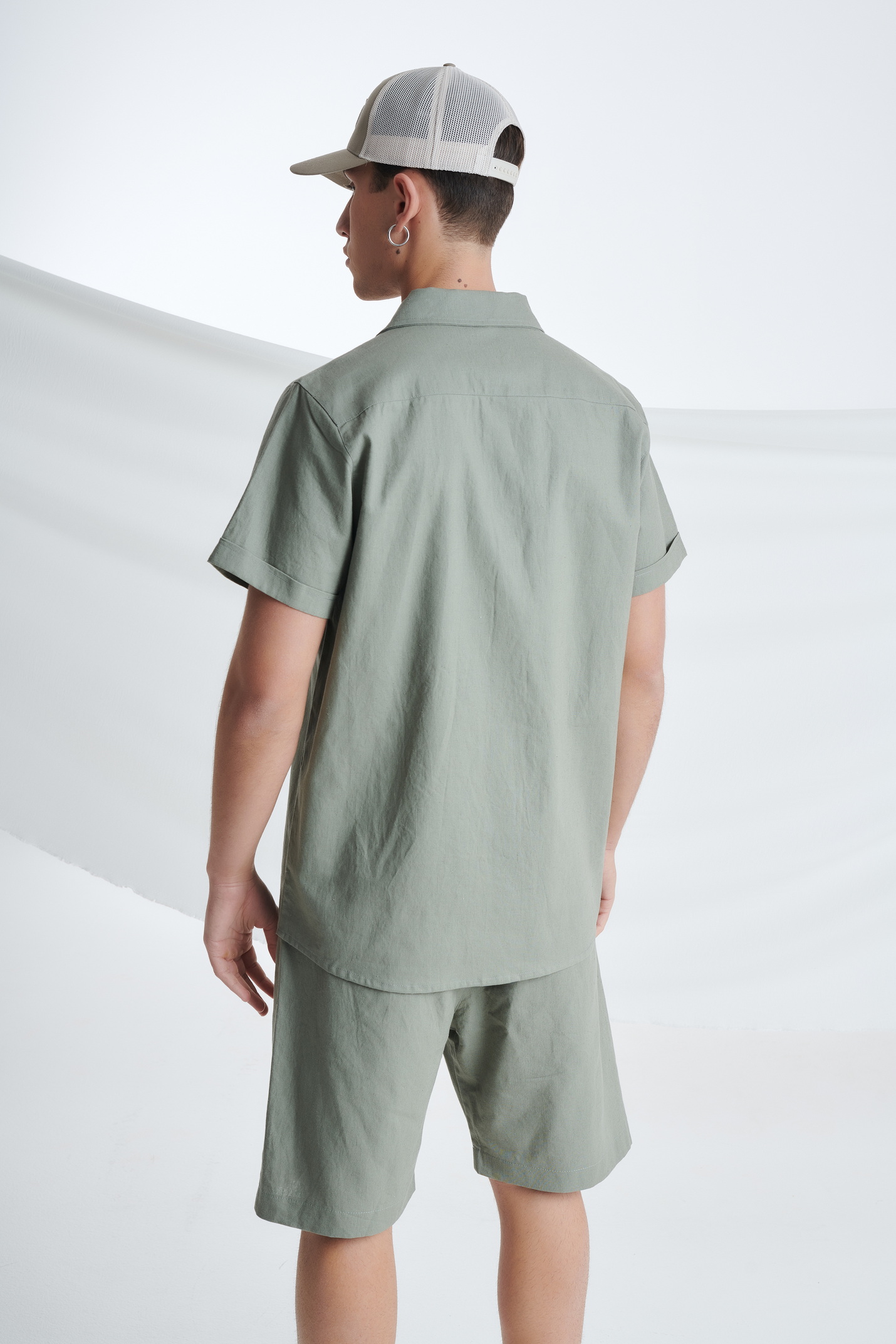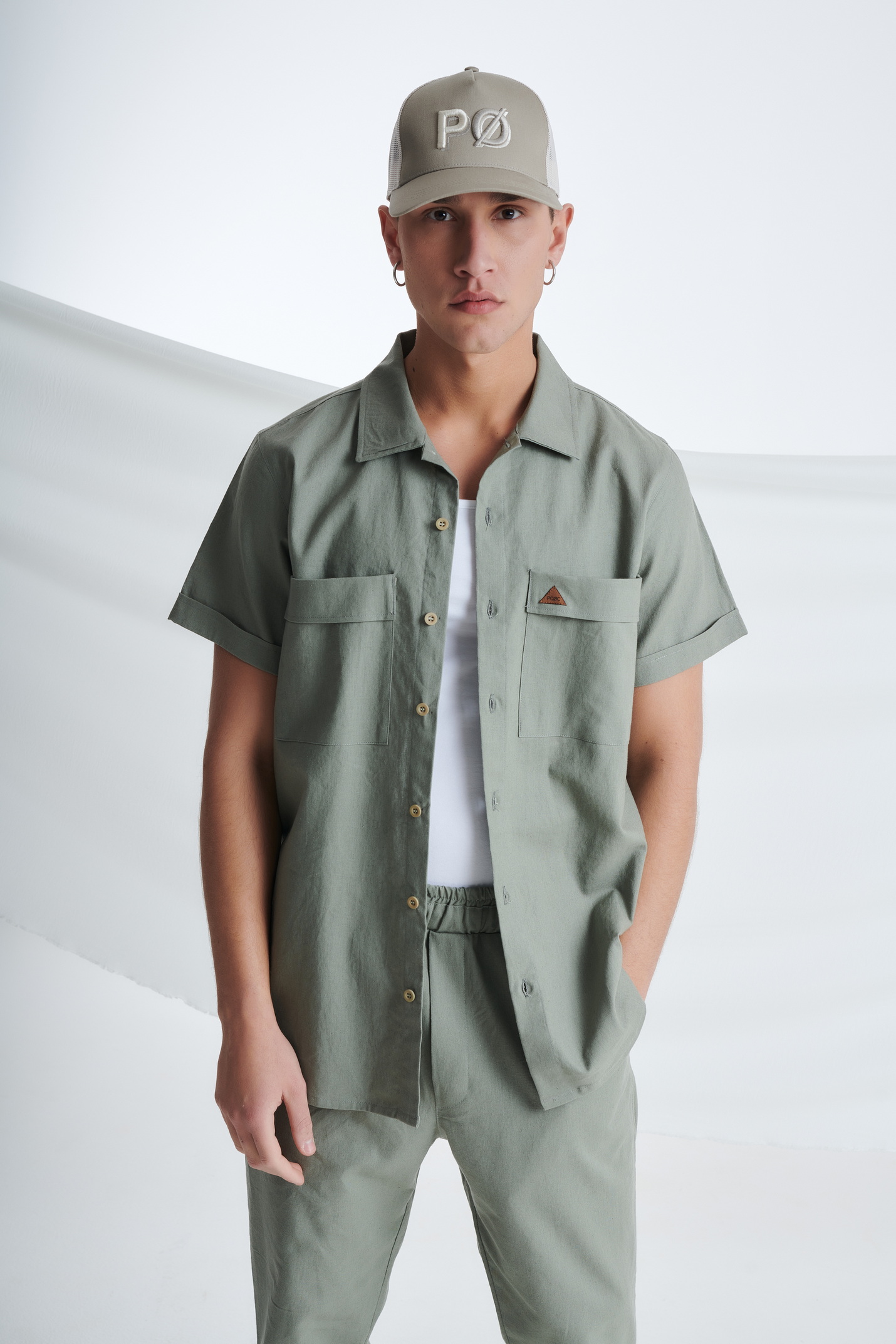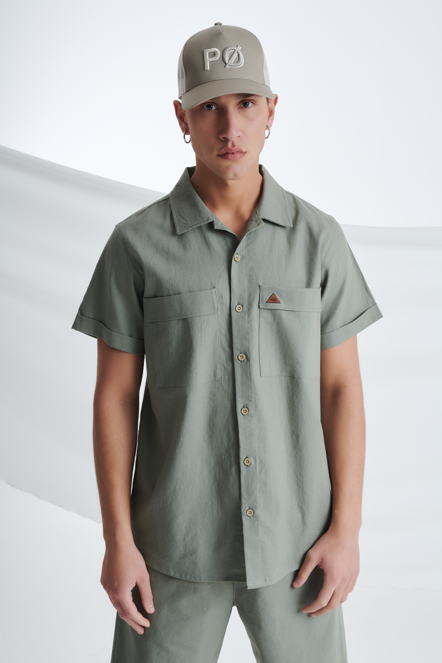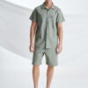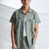 Λινό Κοντομάνικο Πουκάμισο με Τσέπες στο Στήθος