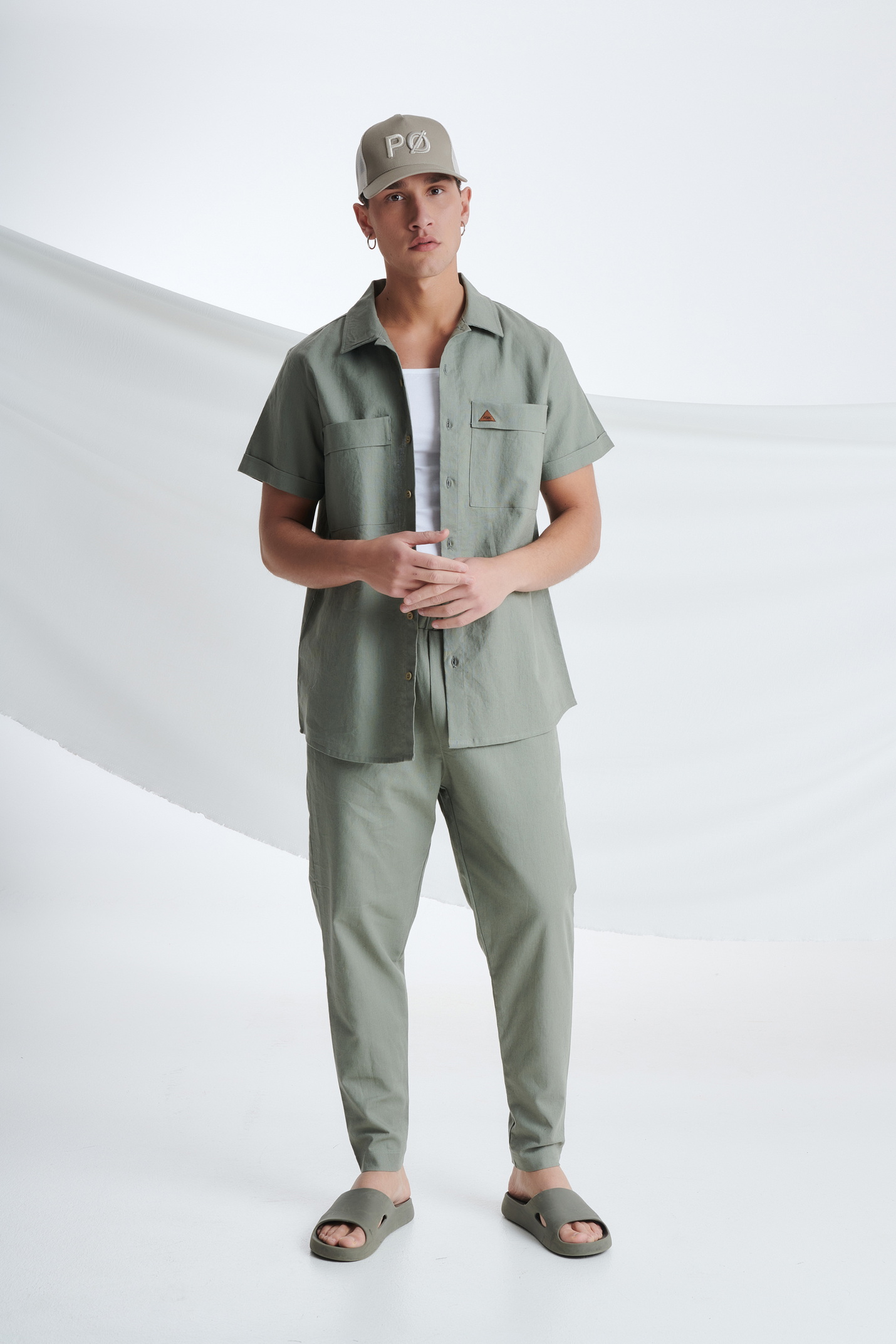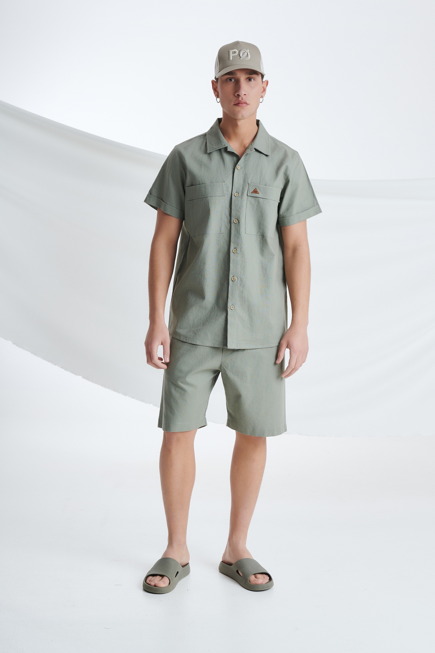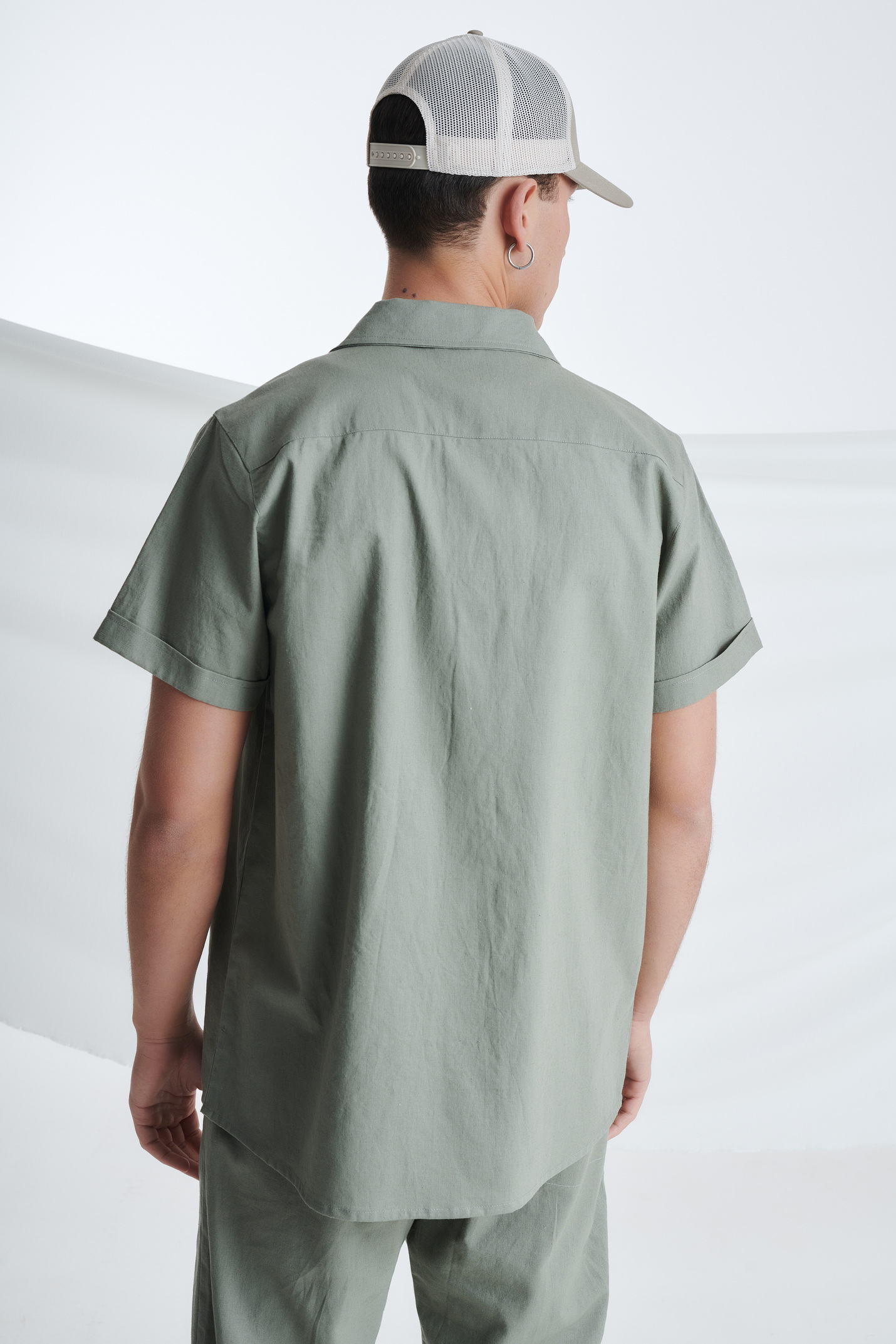Λινό Κοντομάνικο Πουκάμισο με Τσέπες στο Στήθος