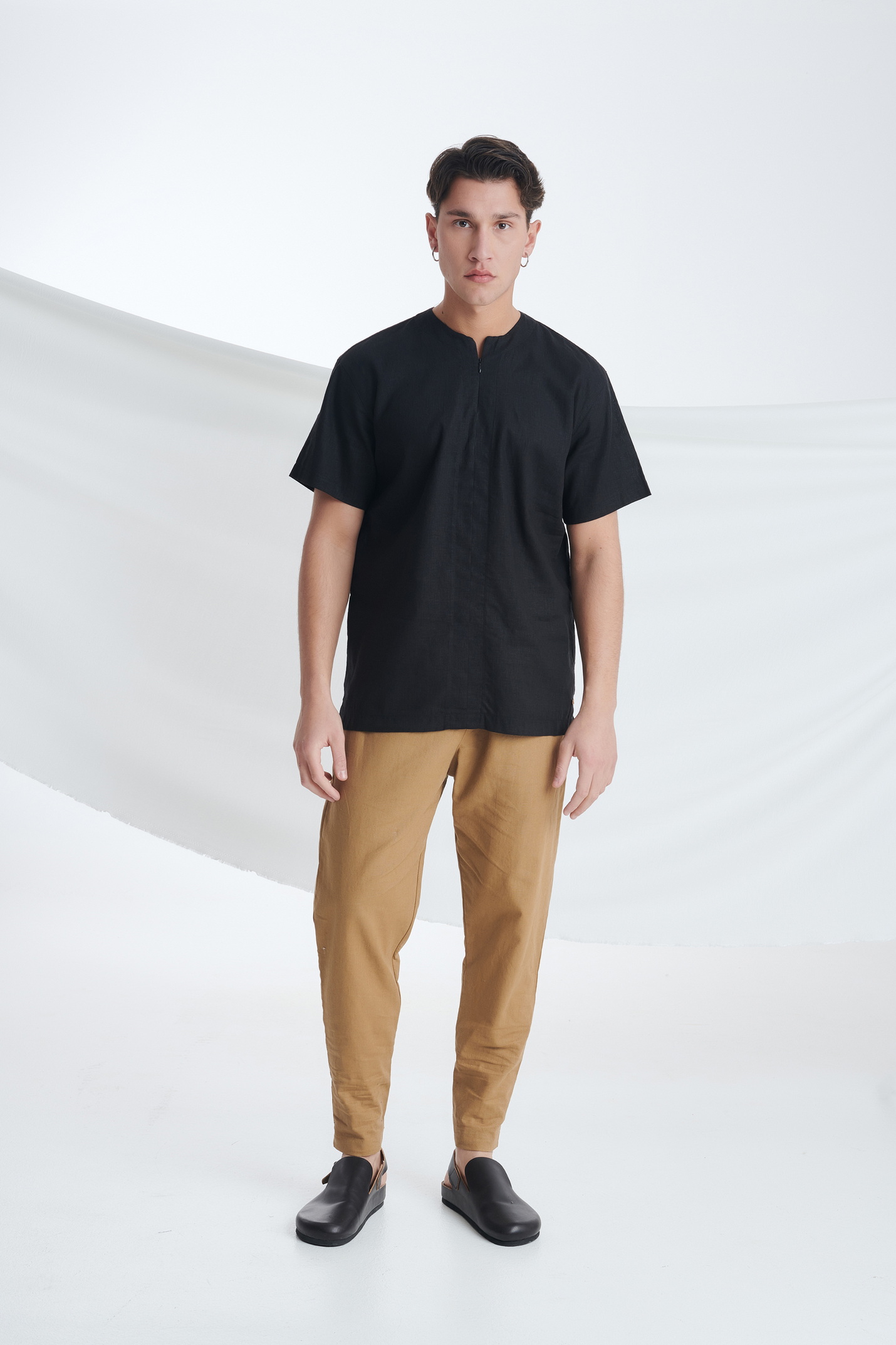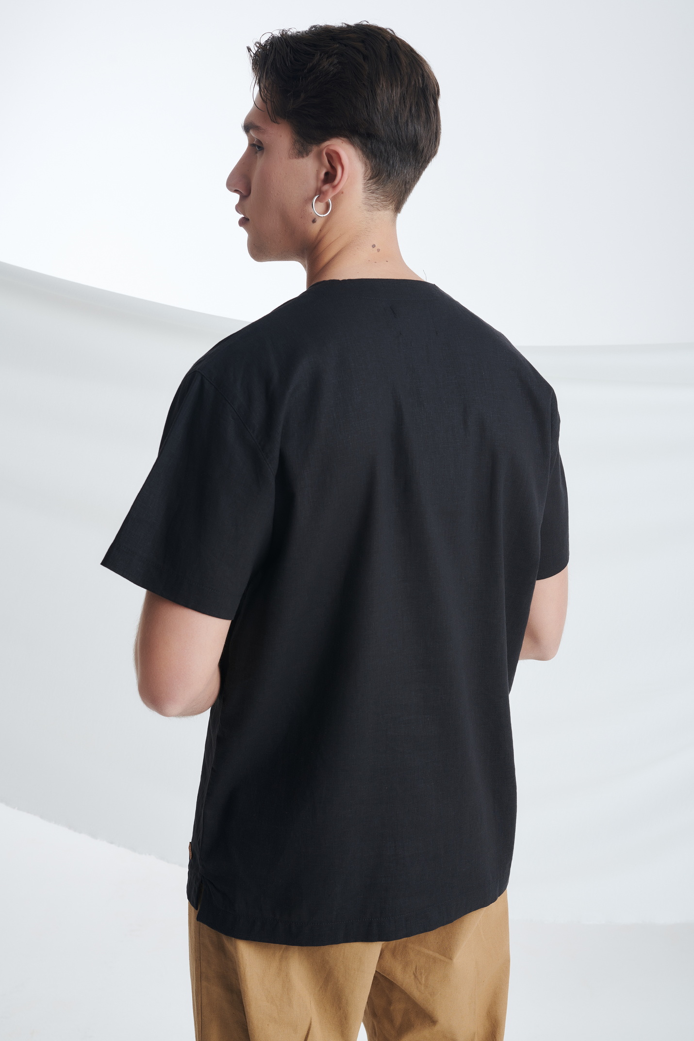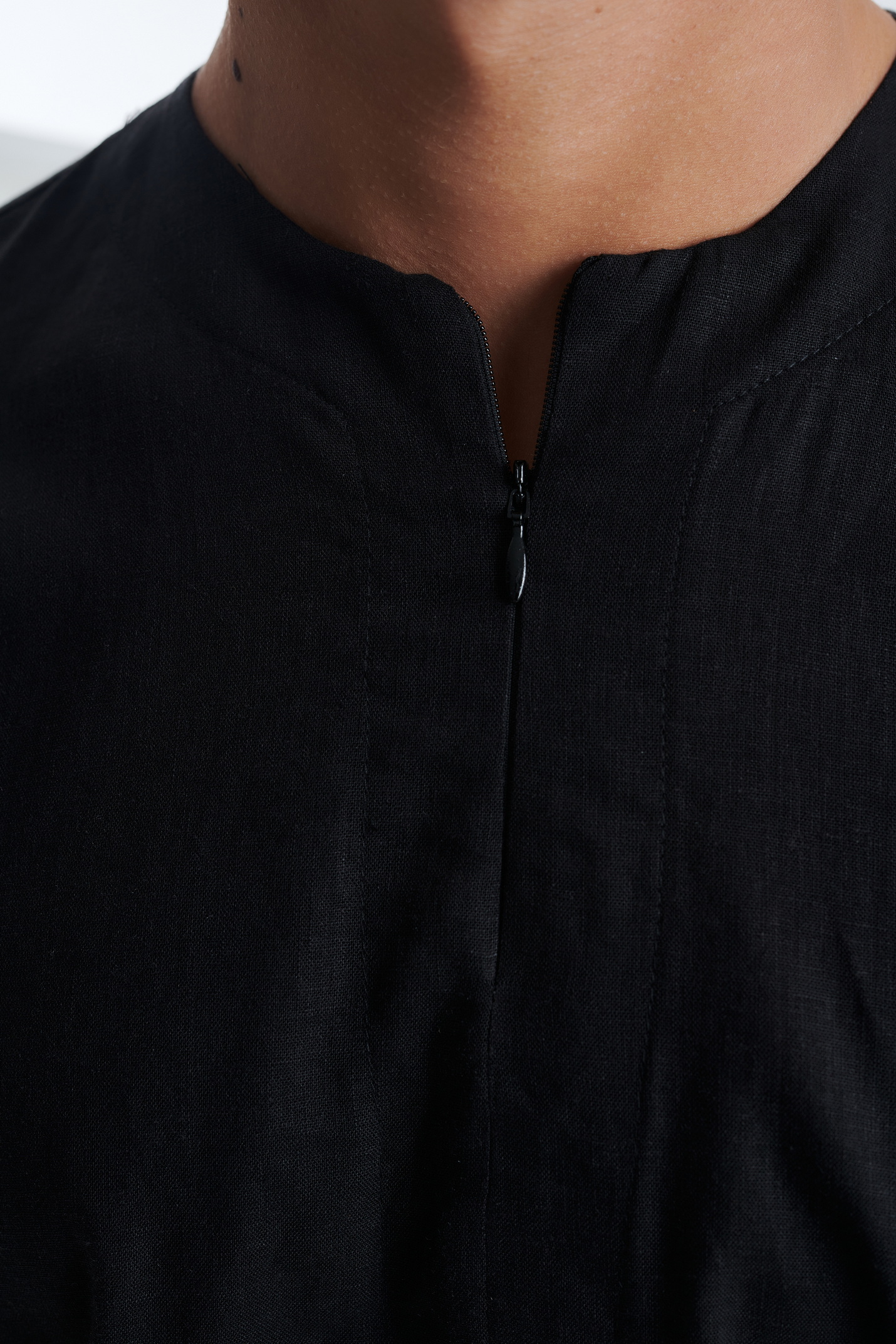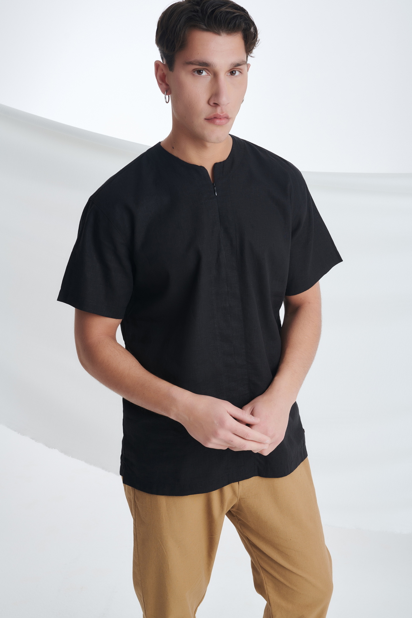 Λινό Μπλουζοπουκάμισο με Κρυφό Φερμουάρ στην Λαιμόκοψη