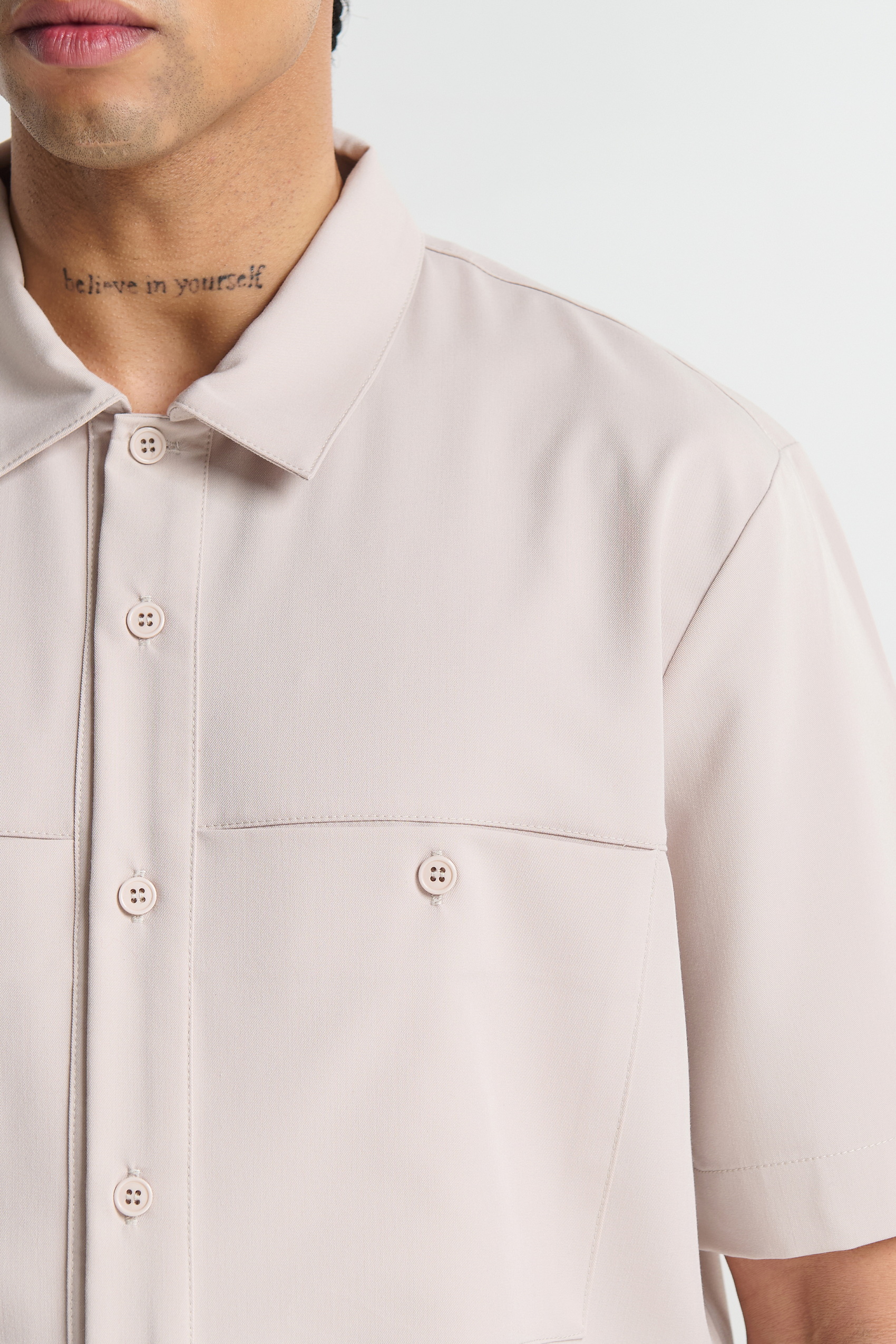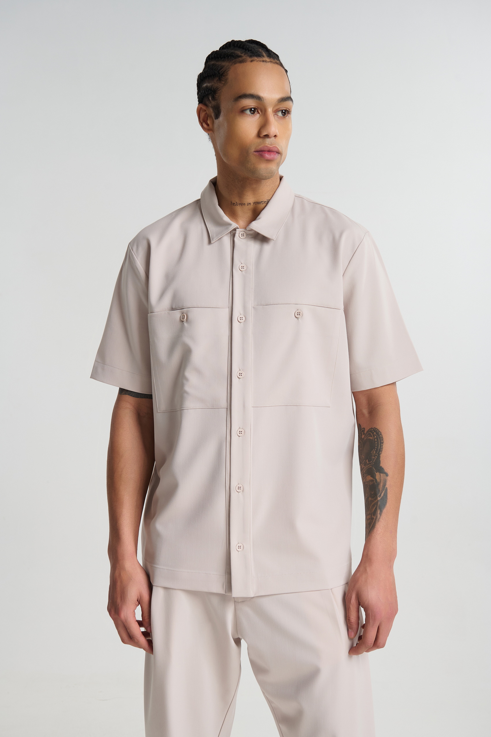 Ανδρικό κοντομάνικο πουκάμισο, με δύο κουμπωτές τσέπες στο στήθος και καθαρές, minimal γραμμές. Άνετη εφαρμογή, ελαφρύ ύφασμα και button-down κλείσιμο για σύγχρονα smart casual και city outfits.