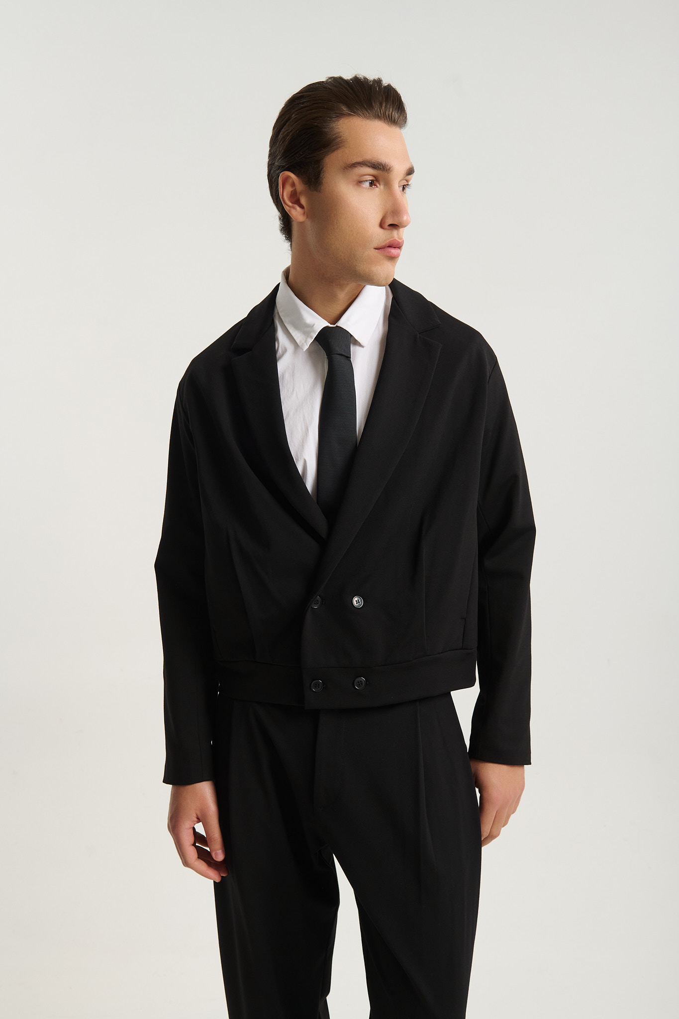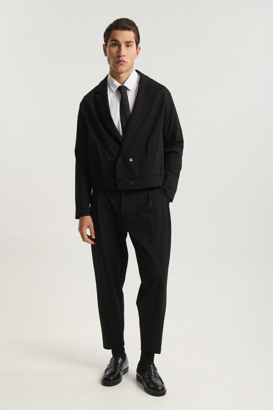 Η cropped γραμμή προσθέτει μοντέρνο χαρακτήρα στο παραδοσιακό tailoring, ιδανικό για updated business ή βραδινές εμφανίσεις.