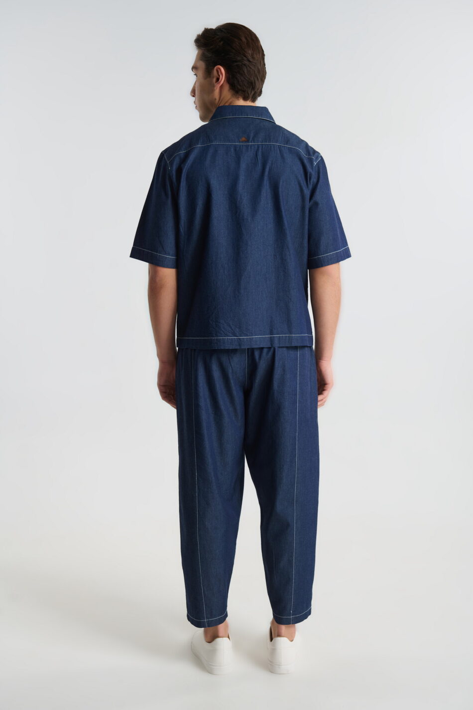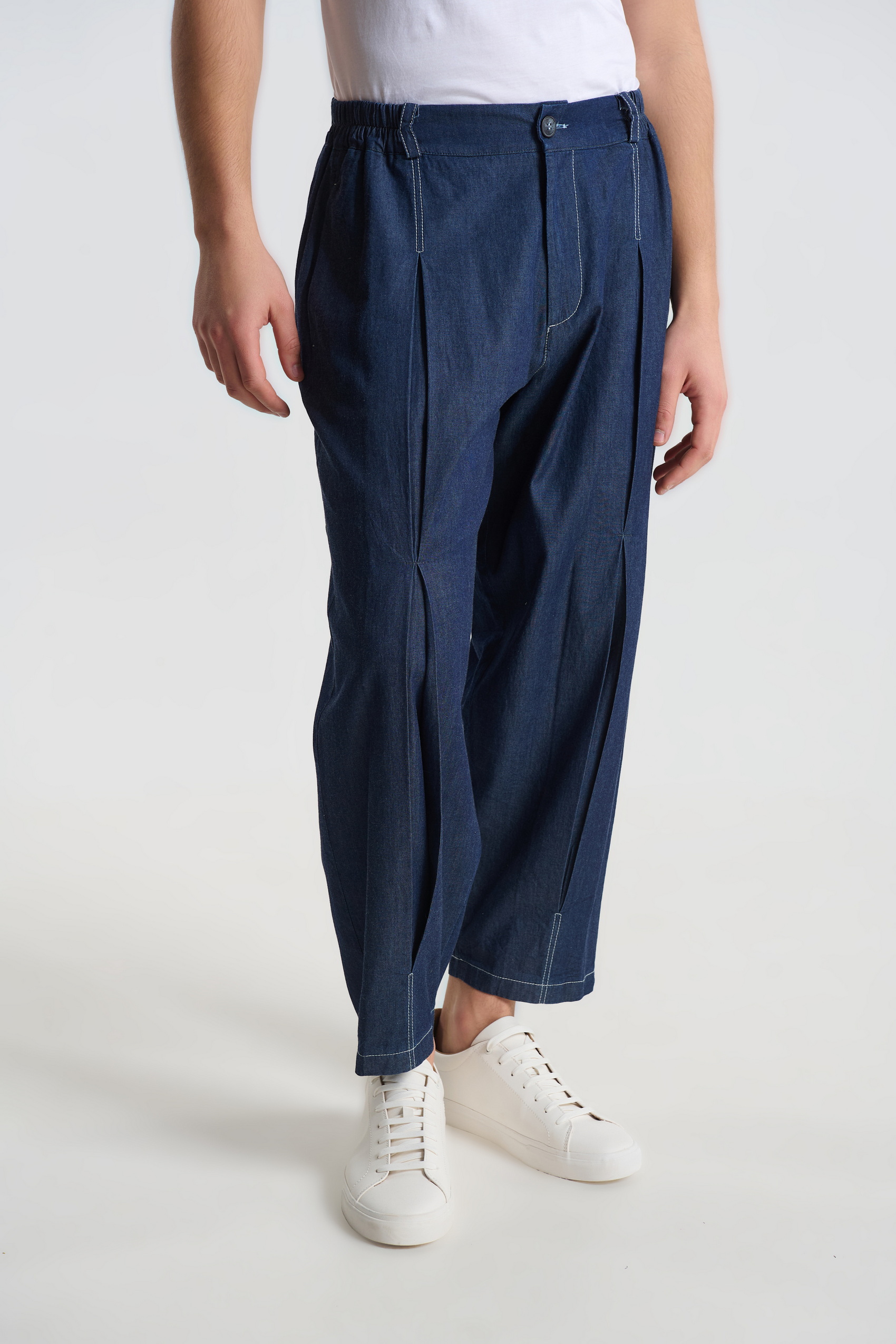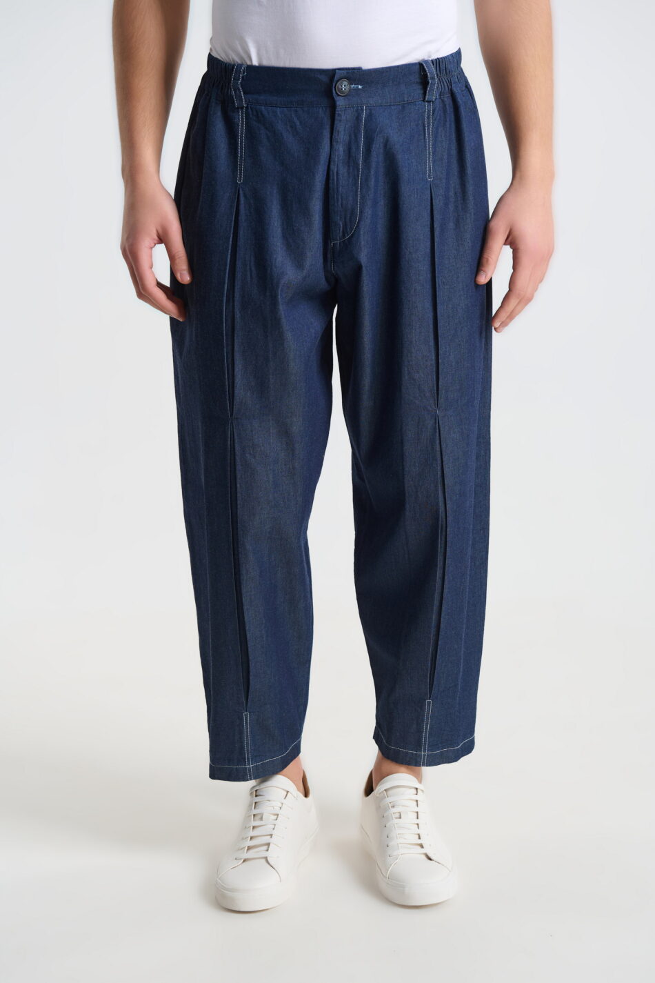 Αναβαθμίστε το urban streetwear στυλ σας με αυτό το ανδρικό τζιν, ένα πραγματικό statement piece που ξεχωρίζει. Οι εντυπωσιακές λευκές ραφές αντίθεσης τονίζουν τις κουφόπιετες και τις γραμμές του design, προσδίδοντας έναν μοναδικό, avant-garde χαρακτήρα.