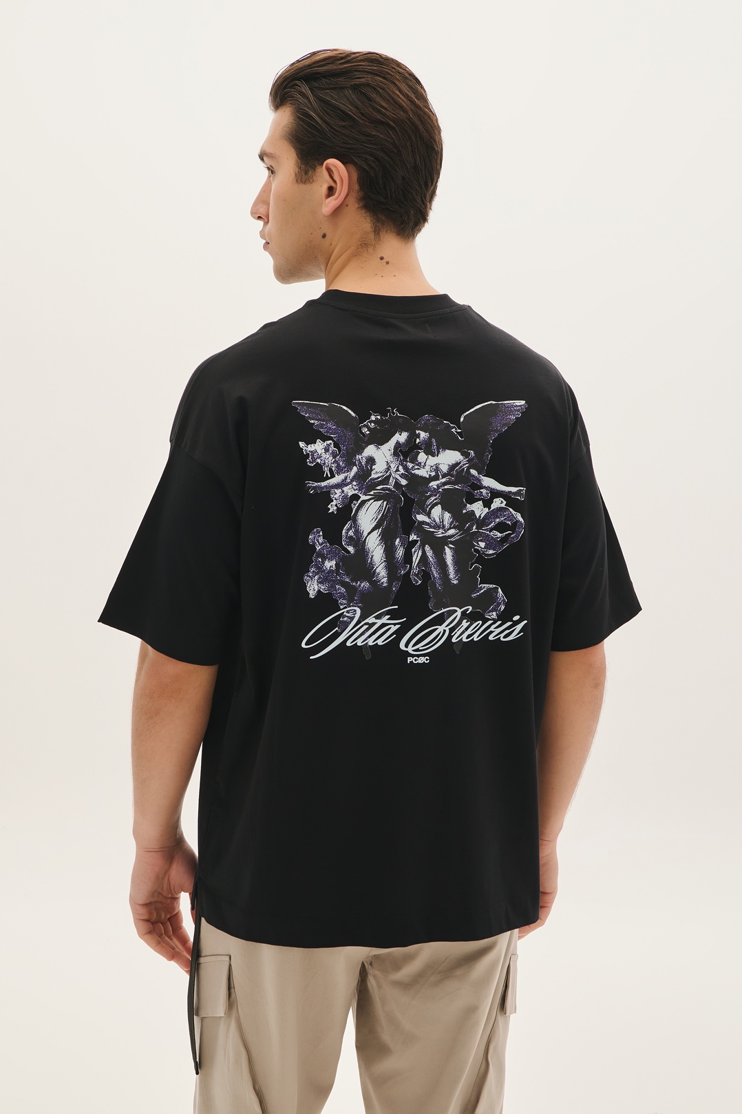 Βαμβακερό T-shirt με Ψηφιδωτό Τύπωμα στην Πλάτη