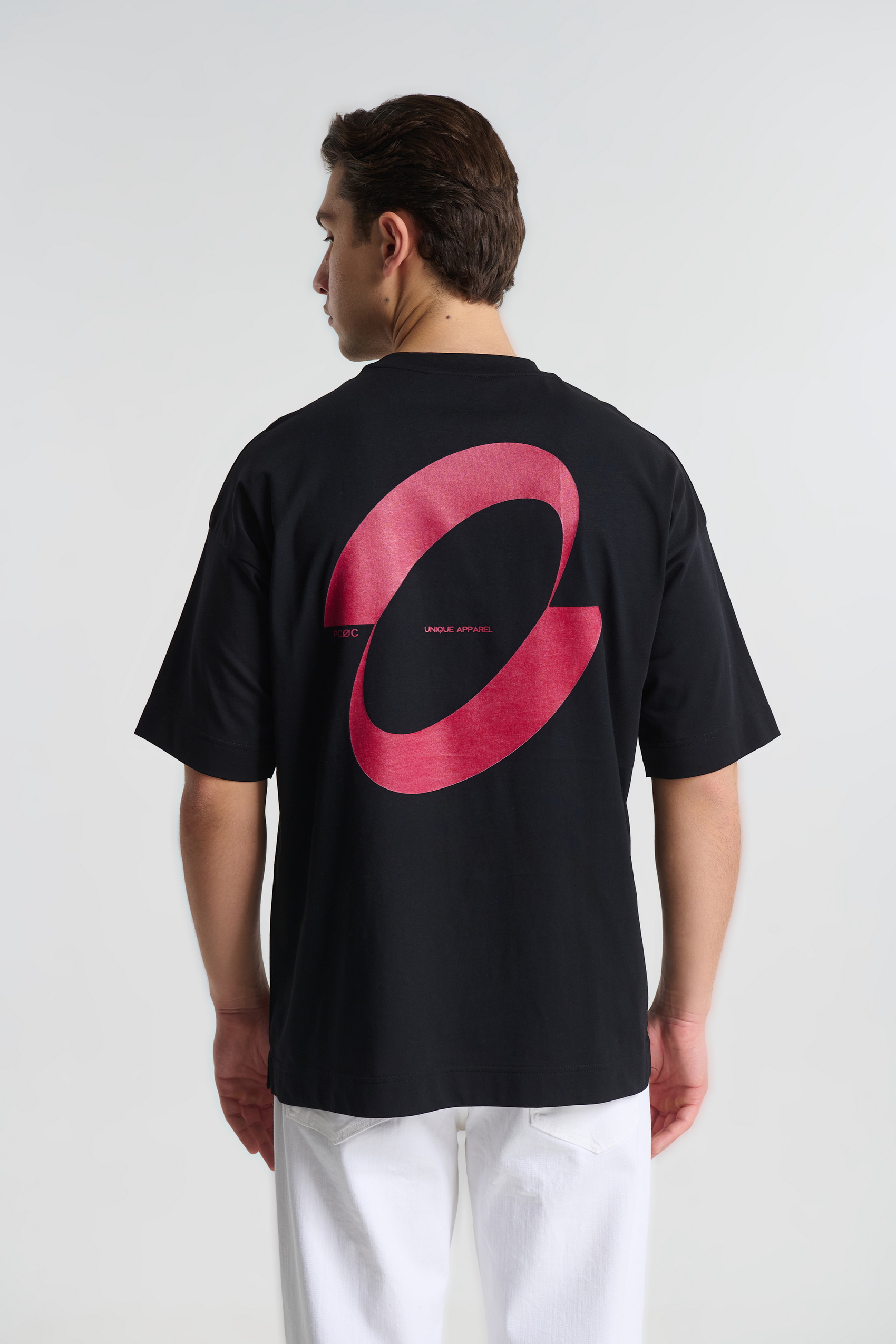 Ανδρικό oversized T-shirt με εντυπωσιακό ροζ print στην πλάτη. Άνετη γραμμή, street style αισθητική, ιδανικό για καθημερινό & city look.