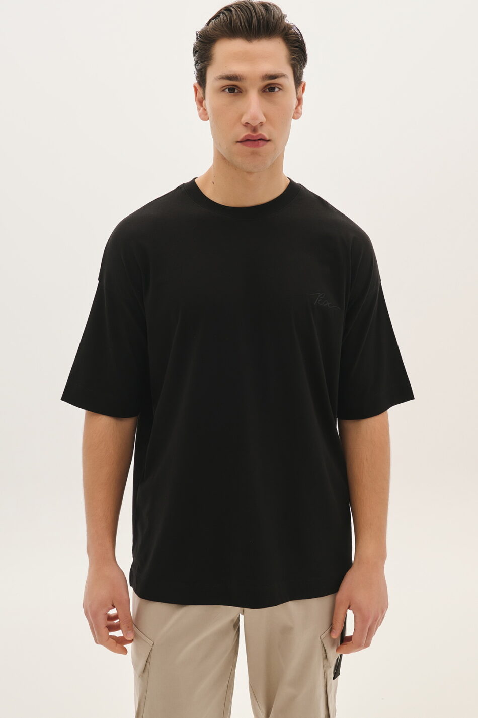 Βαμβεκερό T-Shirt με Κέντημα Πίσω
